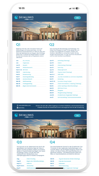 Maximieren Sie Ihren Umsatz und sichern Sie sich Ihren Wettbewerbsvorteil mit den Redaktionskalendern 2026 von Skimlinks. Planen Sie alle wichtigen Konsumentenmomente, von großen Shopping-Events wie Black Friday und dem Singles' Day bis hin zu wichtigen regionalen und saisonalen Spitzen wie den Brückentagen und dem Beginn des Oktoberfests.